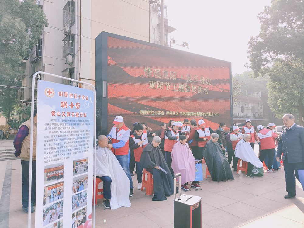 活动现场热闹又暖心:一大早,志愿者们便围坐一起,揉面、擀皮、包馅,一个个饱满的饺子承载着满满关怀;广场上,理发师们细致修剪,让老人们精神焕发;“急救地摊”前,志愿者手把手讲解“三救·三献”知识,实用技巧干货满满。与此同时,市红十字会联合合肥鸿鹤物业铜陵分公司红十字会还专门走访慰问了幸福社区困难老人,送去慰问品与暖心问候。丰富多样的活动吸引周边老人纷纷参与,大家脸上洋溢着幸福笑容,广场上处处是欢声笑语,定格下重阳佳节里最温暖的瞬间。