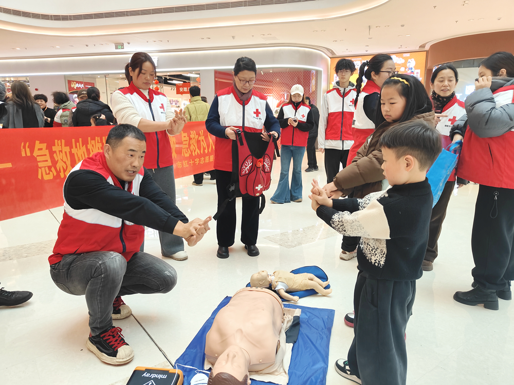 台上节目精彩纷呈,台下市民驻足流连,市红十字志愿者们穿梭其间,一边细致维护现场秩序,一边开展急救地摊,手把手讲解心肺复苏技巧,向群众发放“三救三献”宣传册,用专业服务为新春汇演保驾护航,传递人道温暖。