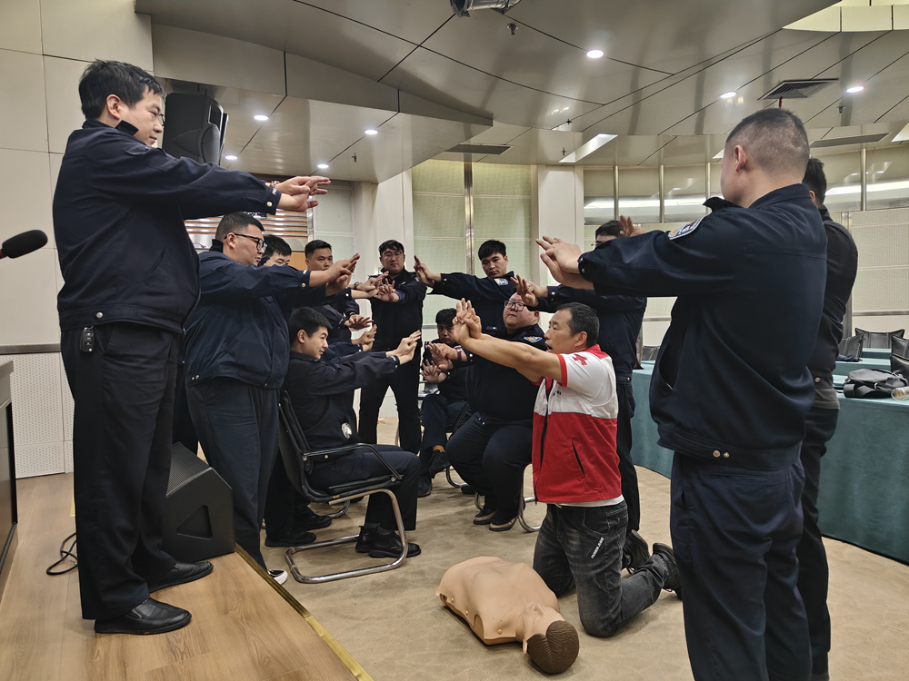 理论环节,市红十字培训师资围绕心肺复苏、AED使用、气道异物梗阻、创伤止血包扎、骨折固定等高频处置场景,讲解核心知识与规范流程,纠正错误急救方法,夯实理论基础。实操环节,师资借助模拟人、AED等教具,精准示范操作要点,手把手纠正动作偏差,指导学员反复练习,确保充分掌握技能。