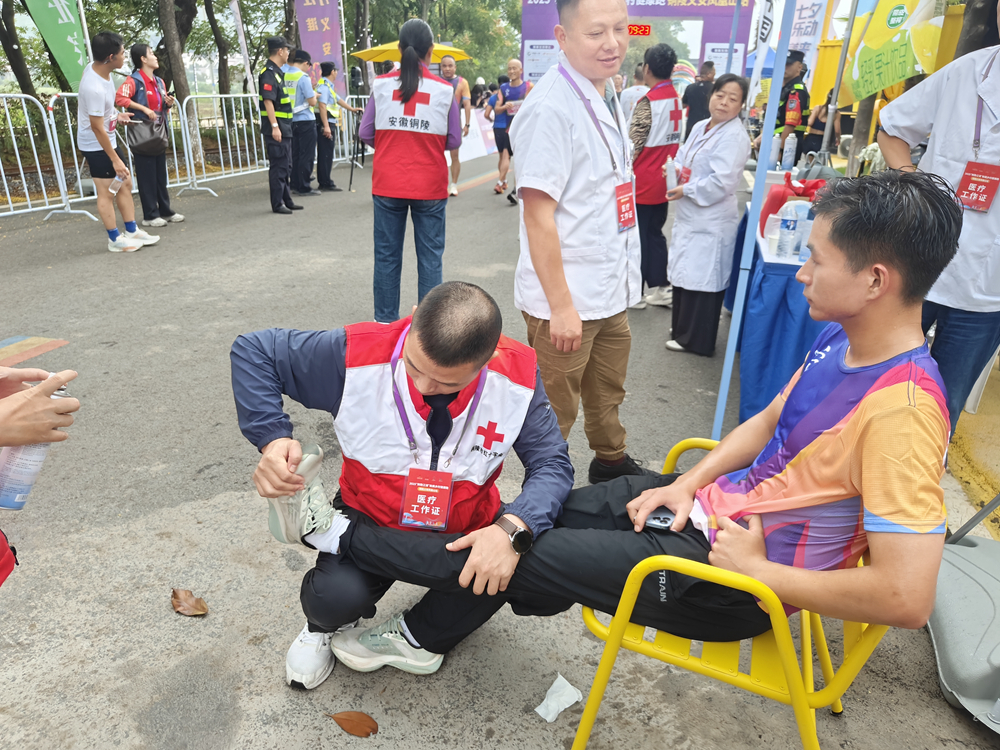 比赛过程中,红十字保障人员始终以高度负责的态度、饱满的热情和专业的技能,密切观察选手状态,及时处理抽筋、擦伤、体力不支等情况,用实际行动守护了整场赛事的安全与健康。他们忙碌的身影,成为赛道上一道温暖而靓丽的风景。
