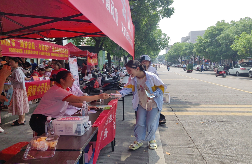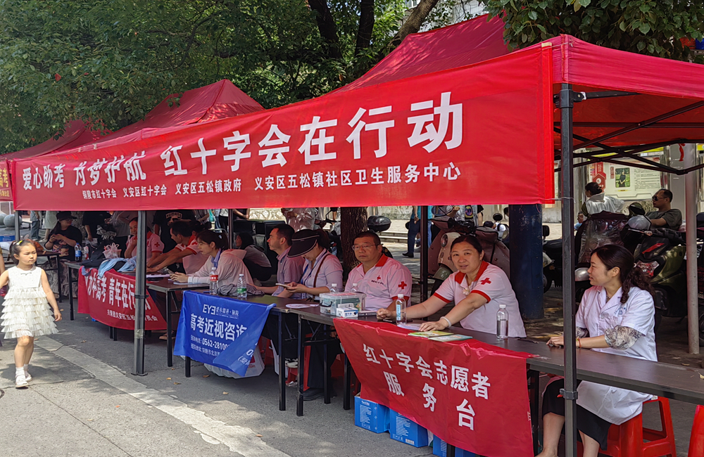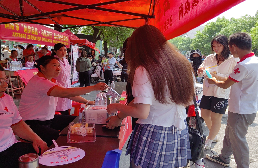 6月7日—6月9日,铜陵市红十字会联合义安区红十字会及相关部门在铜陵中学高考考点开展“爱心助考 为梦护航”志愿服务活动。