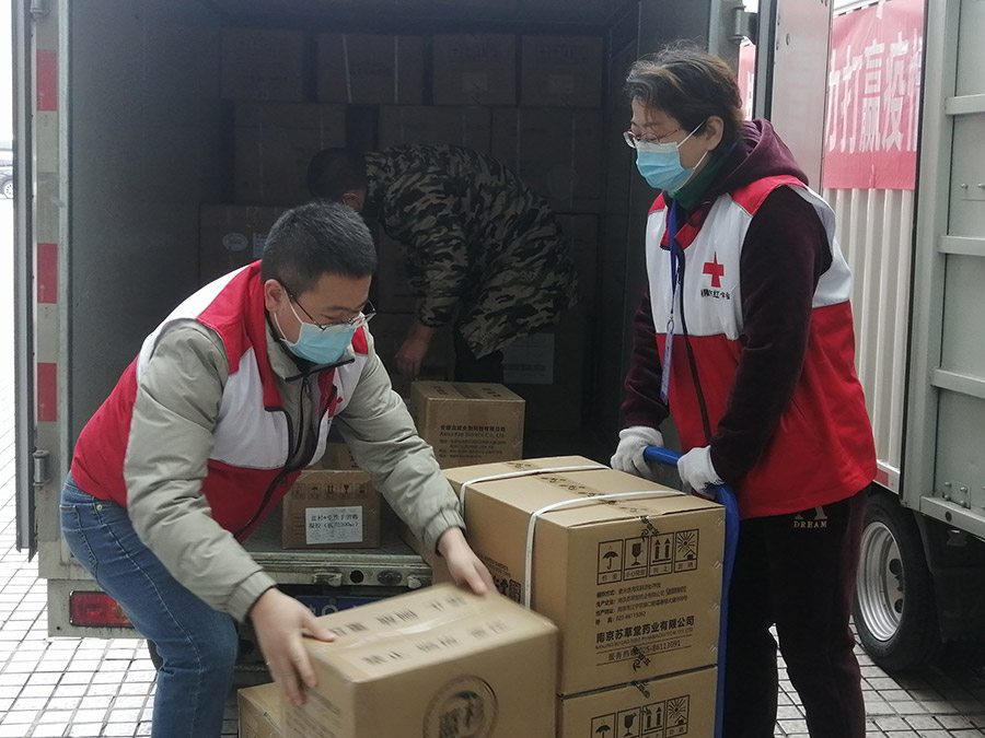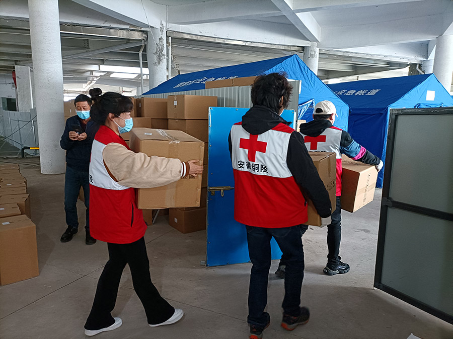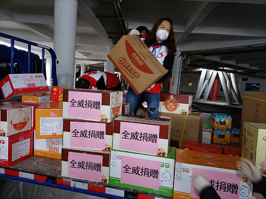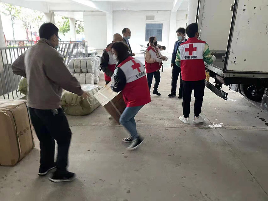 协助红十字会做好捐赠物资搬运及统计工作