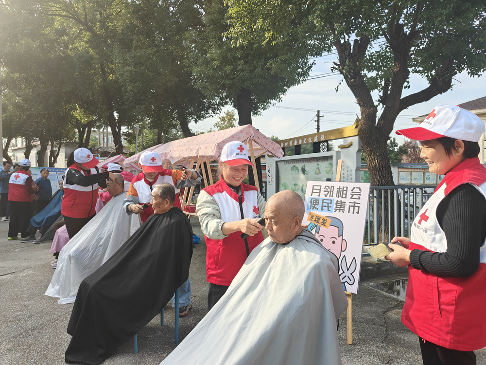 与此同时,志愿服务区同样暖意融融。红十字志愿者们化身“爱心理发师”,手持剪刀、梳子,细心询问老人们的发型需求,为他们剪出清爽利落的发型;还有志愿者蹲在老人身边,耐心打磨指甲,用细致服务传递关怀。另一侧,志愿者们向居民发放“三救·三献”宣传手册,用通俗的案例讲解红十字会的主责主业,居民或驻足翻阅手册,或围在志愿者身边提问交流,学习热情高涨,不少人感慨“学到了真本事,以后遇到紧急情况也能帮上忙”。