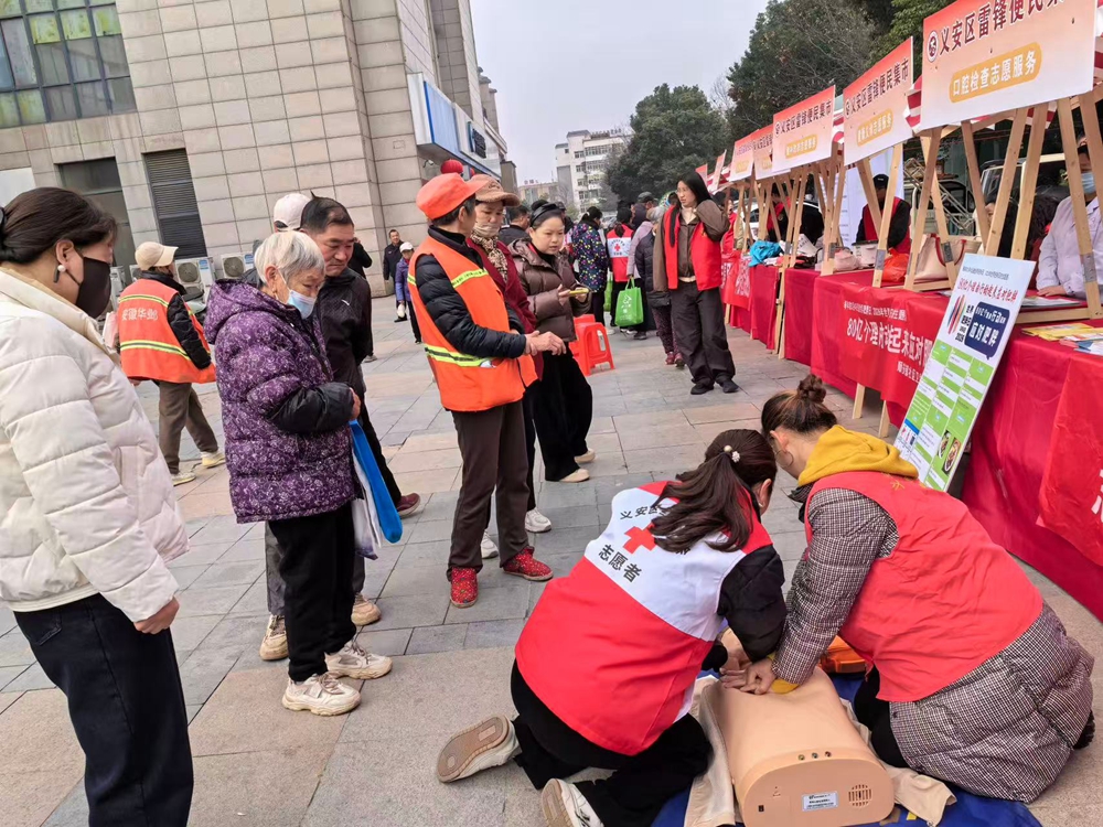 3月5日,义安区红十字会联合区社工部在顺安镇佳嘉利广场开展普及性应急救护培训活动。